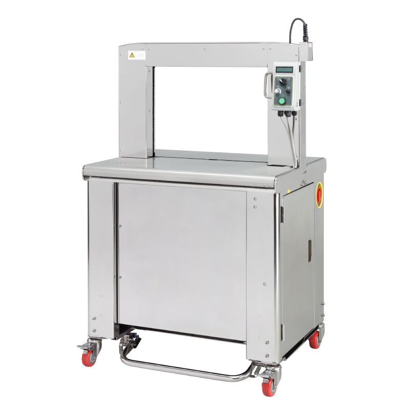 Transpak TP-702S , paslanmaz çelik çerçeveli (SUS 304) birinci sınıf, yüksek hızlı otomatik çemberleme makinesidir. Et, deniz ürünleri, kümes hayvanları ve tarımsal işleme tesisleri gibi nemli çalışma ortamı için idealdir.